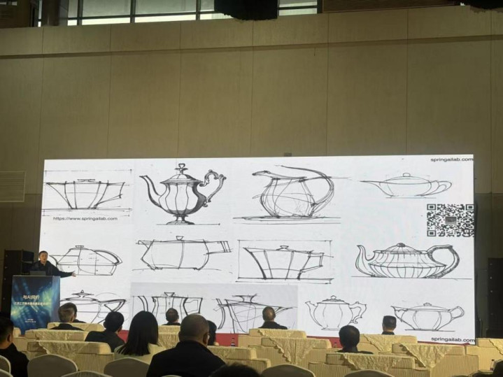 江南大学中国紫砂艺术设计研究院特聘研究员、无锡供春人工智能科技有限公司创始人张雨航,带来了《AIGC赋能工艺美术大众创新》的实践分享。他介绍,当前工艺美术行业面临数字化门槛高、设计工具复杂等痛点,AIGC技术则有效降低了创作门槛,用户通过文字描述、草图、参考图等即可秒级生成设计方案,实现无限创意输出。“工艺美术行业的痛点之一是设计门槛高,很多手工艺人不会使用复杂设计软件,AIGC降低了创新门槛,让人人都能参与工艺美术设计。”张雨航强调,“创新的主体是人,不是AI,AIGC是辅助创新的工具,而非创意本身。”论坛上,他还展示了AIGC在紫砂、陶瓷等领域的应用案例,包括与文博机构合作的游客手绘定制、面向青少年的非遗美育实践等。
